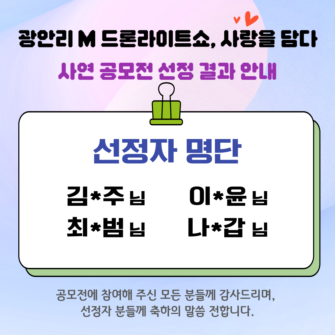 Announcement of the Selection Results for the "Gwangalli M Drone Light Show, with Love" Story Contest