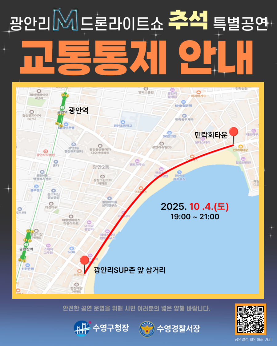 광안리 M 드론라이트쇼 추석 특별공연 교통통제 안내